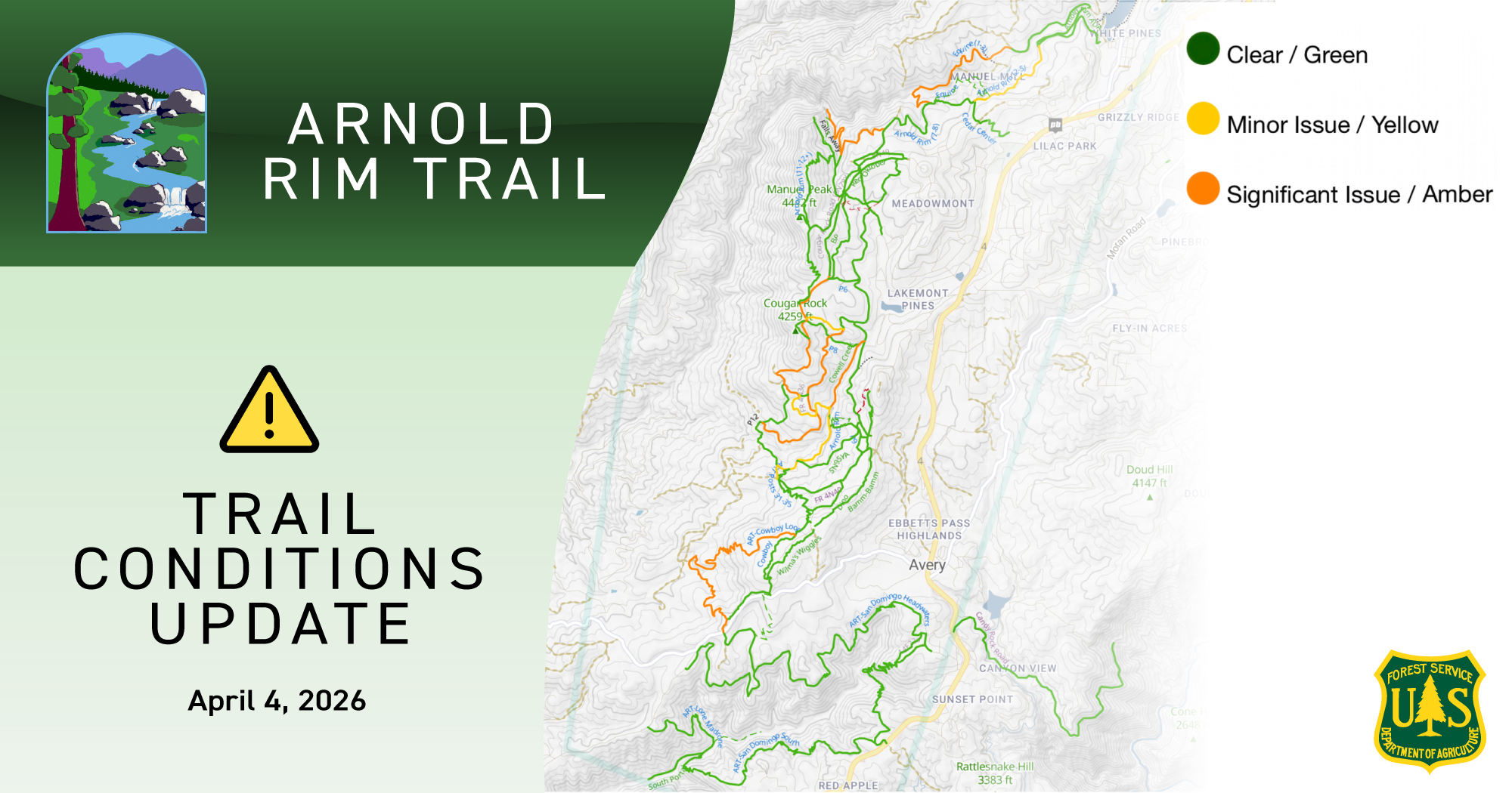 Arnold Rim Trail — Trail Conditions Alert – April 4, 2026
